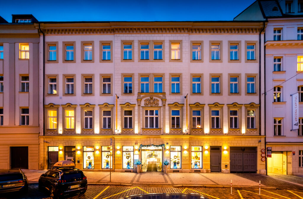 10 min. walk from Prague Main Train Station (Hlavní nádraží).